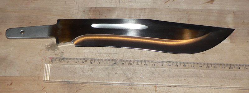 J’ai fait mon logo « le cerf bondissant », ma signature, et le numéro (c’est une innovation, c’est le N°1 de 2008, je ne sais pas si il y aura un n°2!!). J’ai eu un peu de mal, car pour une lame de cette taille (il est impressionnant quand on l’a en main) je manquais de place en raison de la saignée qu’il y a sur la lame. je trouve la gravure un peu moins réussi que sur le Bowie os, mais elle est acceptable, c’est du fait « main », chacune est donc unique.