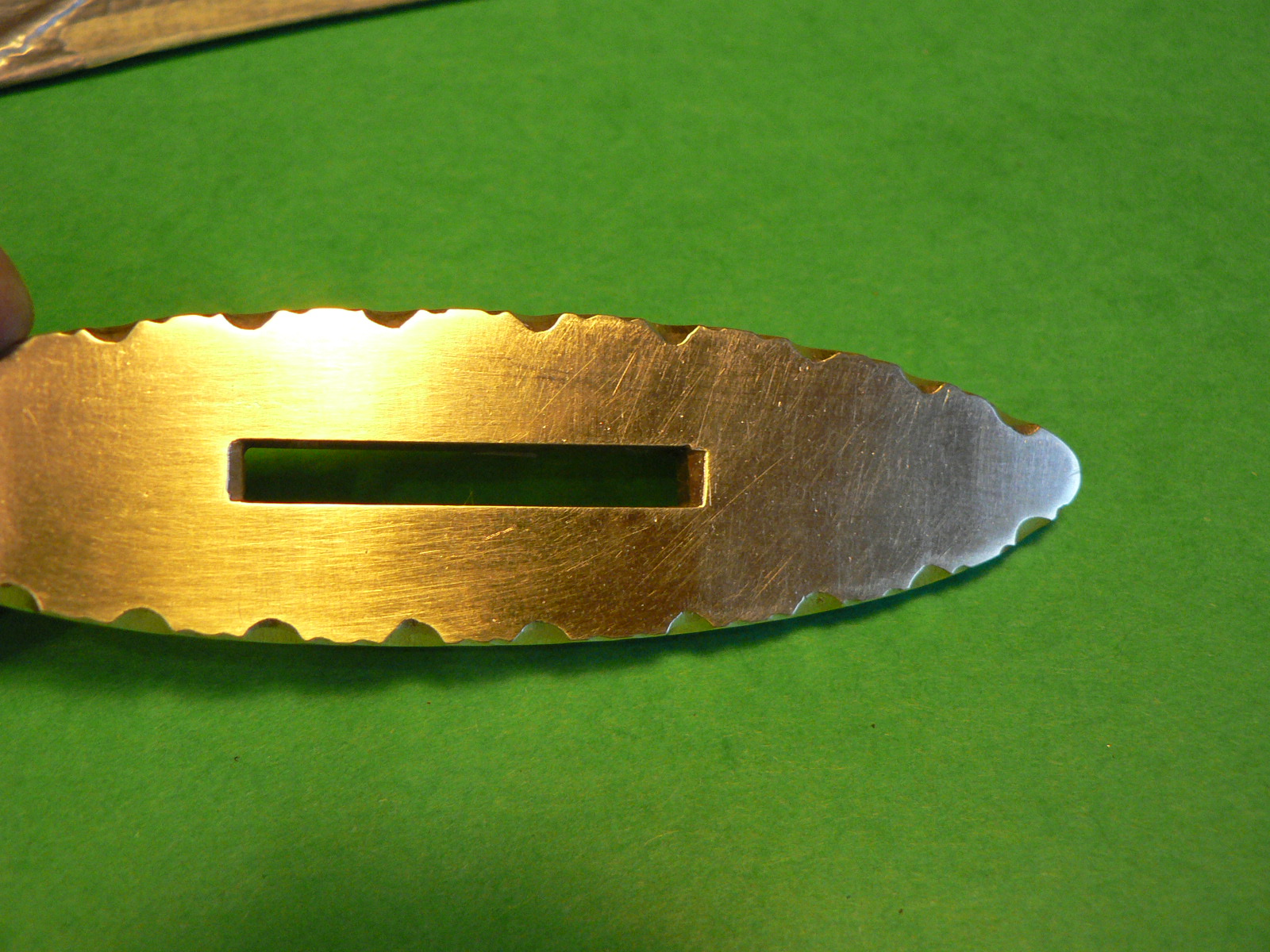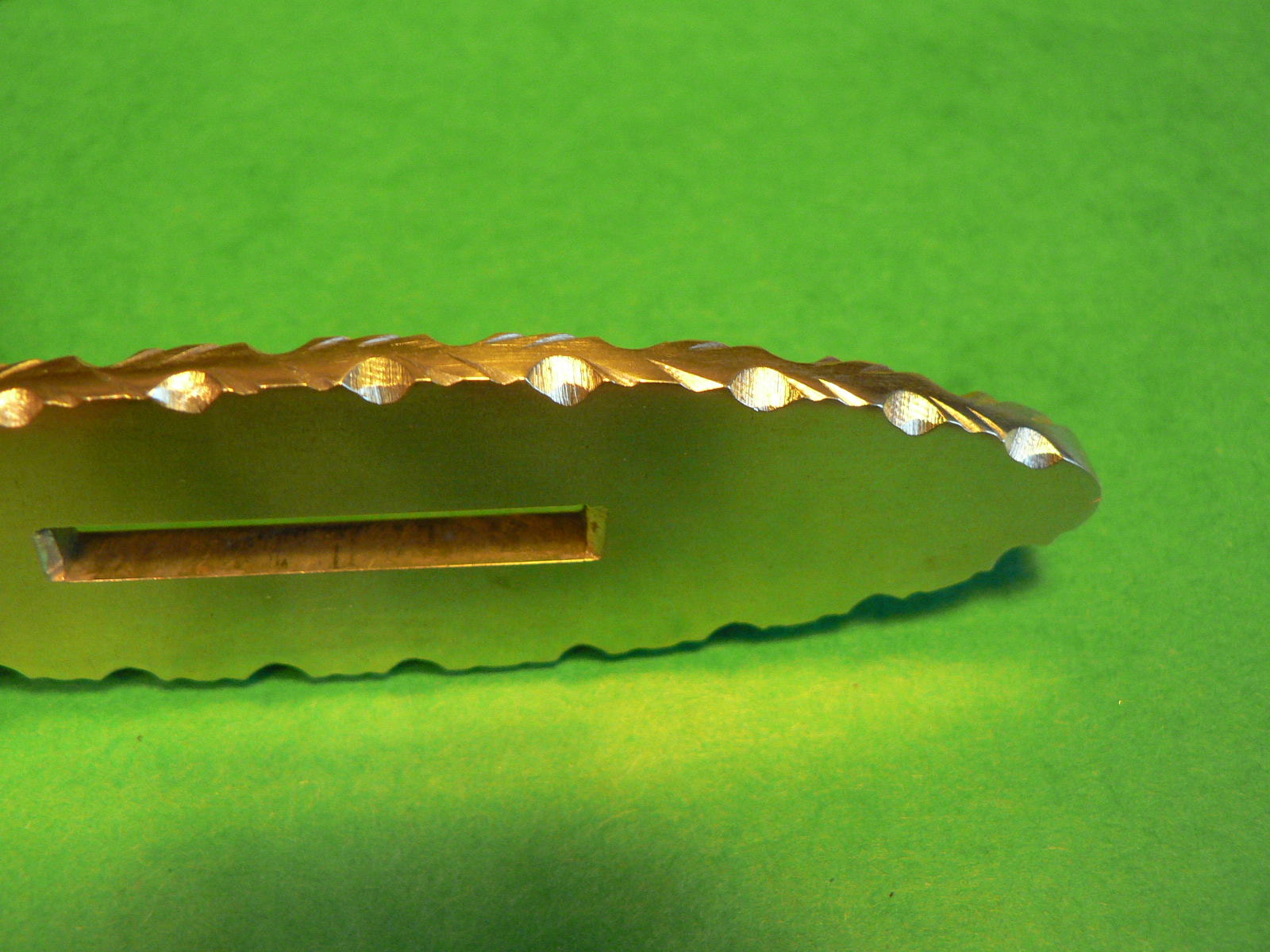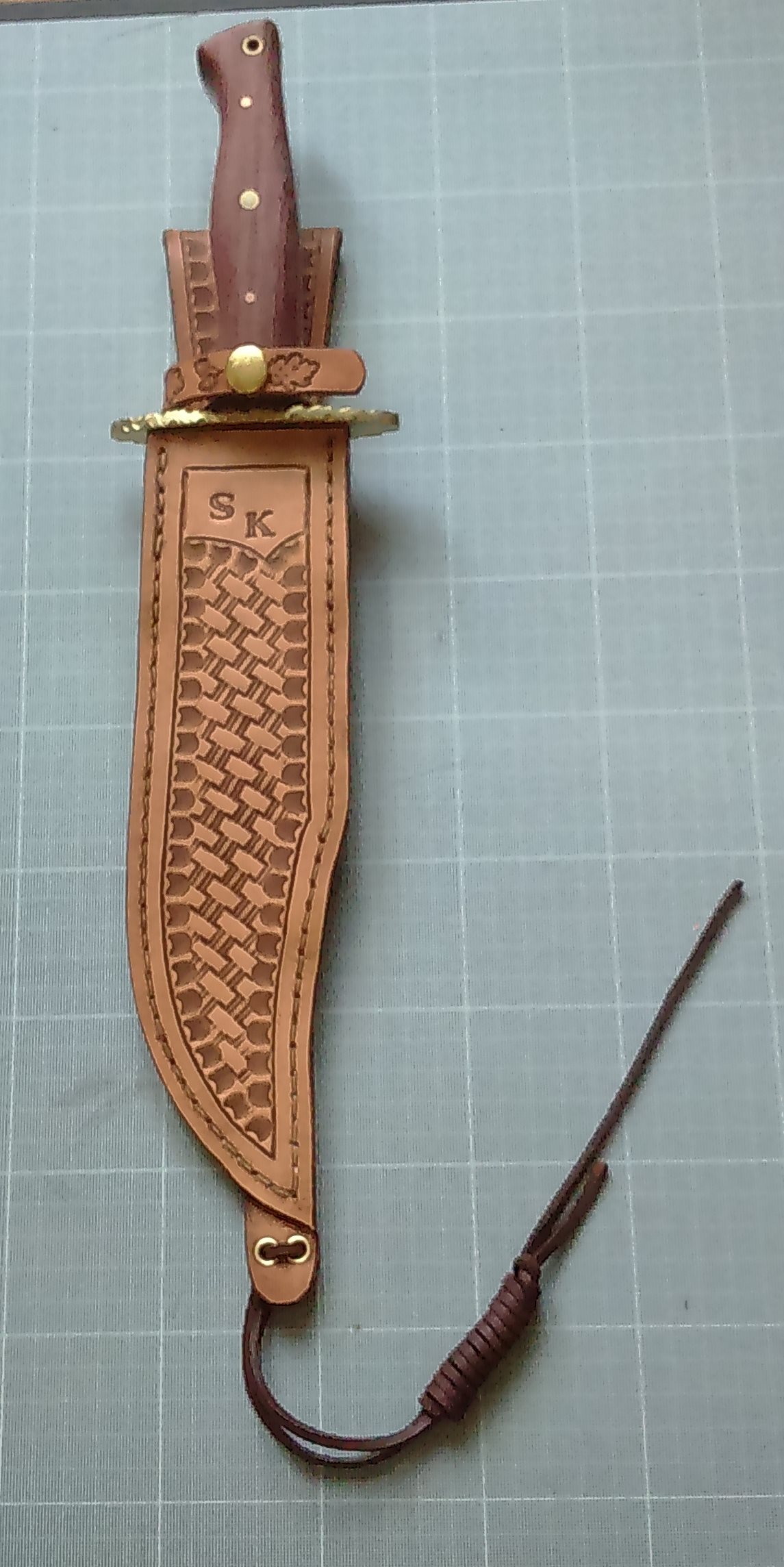 La garde est en laiton, j’ai repris le même motif que le guillochage de la lame.