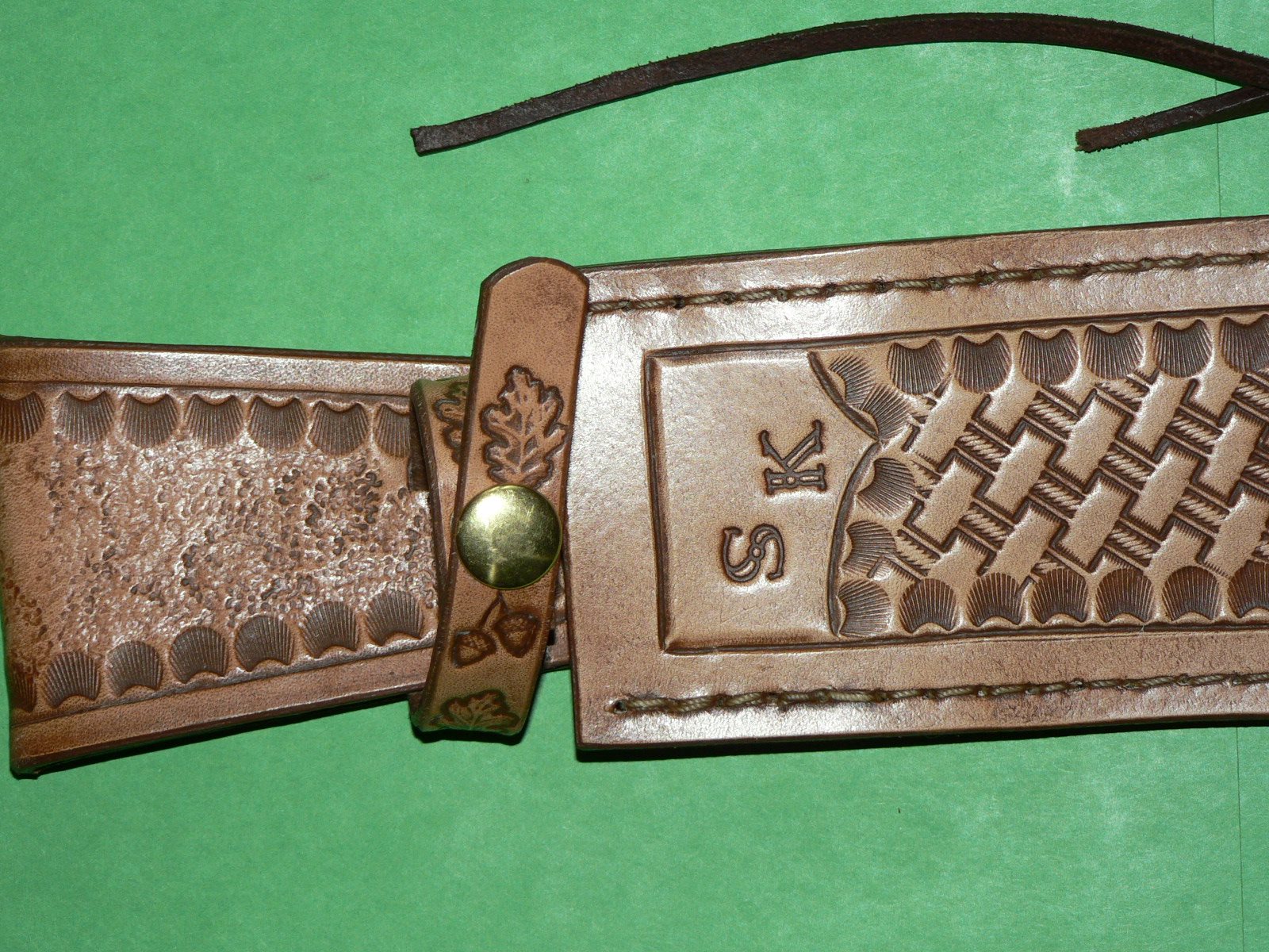 L’étui est réalisé en cuir tannage végétal 1er choix (origine France), il est cousu au point sellier et renforcé avec des rivets. J’ai innové en faisant passer une partie du passant par l’intérieur (voir les photos pour comprendre).